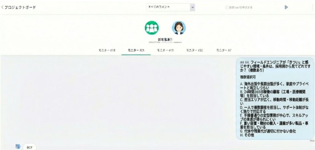 - Part B(転職者20名):全員フィールドエンジニア経験者。実際に辞めた本人の視点