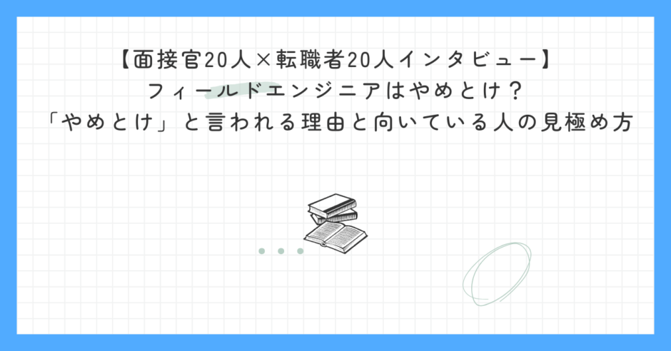 「フィールドエンジニアはやめとけ」と言われる理由(面接官・転職者20人ずつ40人の声)