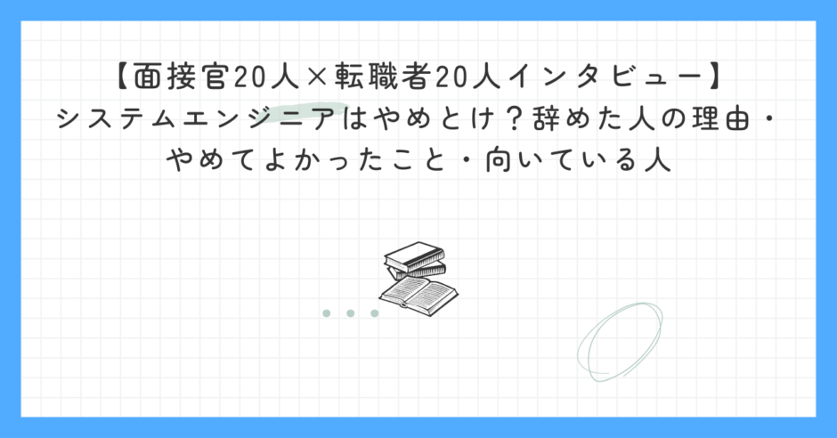 システムエンジニアはやめとけ?辞めた人の理由を面接官20人+転職者20人に聞いた