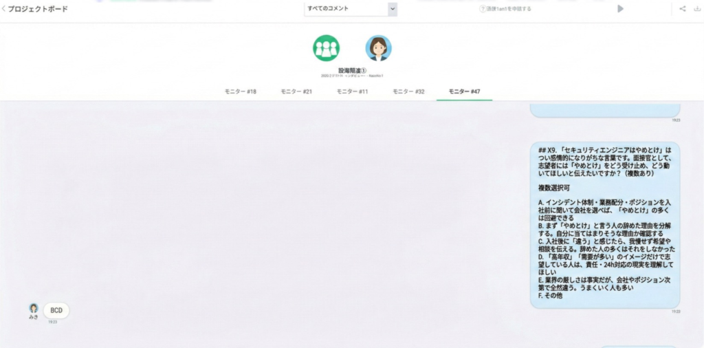 - Part B(転職者20名):全員セキュリティエンジニア経験者。実際に辞めた本人の視点