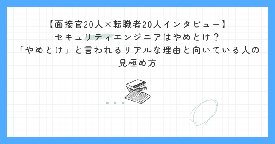 「セキュリティエンジニアはやめとけ」と言われる理由(面接官・転職者20人ずつ40人の声)